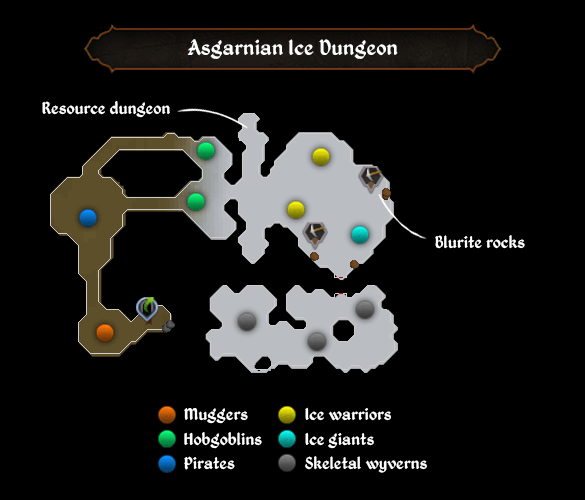 This dungeon is particularly dangerous to low level players. The asgarnian ice dungeon, also known as the blurite dungeon, is the only place in gielinor you can find and kill skeletal wyverns and frost dragons. Right now i have an ice giants slayer task, and it's pretty much impossible to attack them because the ice warriors will aggro first. Click on the world map icon in the top right corner. Anyone who has done the knight's sword quest will be familiar with this place.